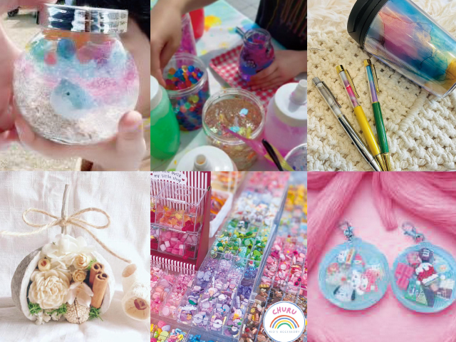 アロマジェル、デコキーホルダー、アルコールインクアート、クラッシュボトル、ブッダナッツ&ガーランドなど、小さなお子様も気軽にチャレンジできるワークショップが揃います。